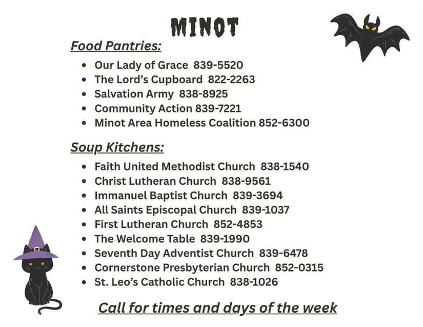 Motorists be alert for trick or treaters in downtown Minot Thursday (10/30) as Downtown Minot hosts their annual Halloween Treat trail for pre-school age children 10am to Noon. Maps at participating locations.
