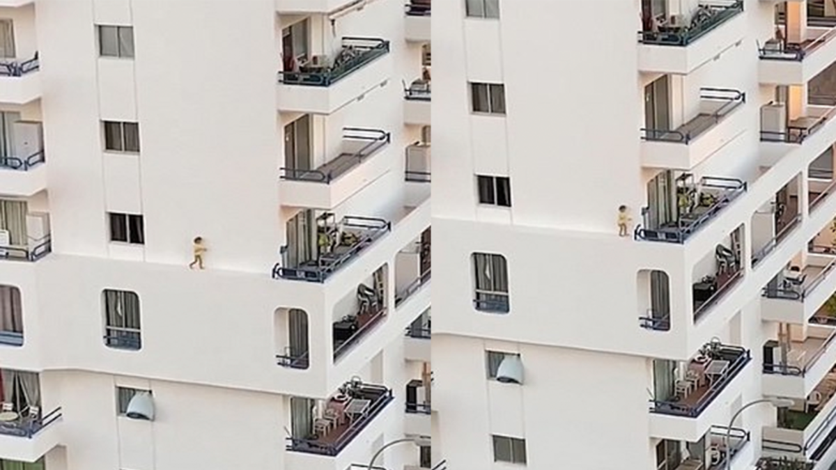 Kids manage to get into all kinds of trouble, especially if a parent turns their back on them for just a few minutes. That's what a little girl in Tenerlife, Spain proved by climbing out a fourth floor window and walking along a narrow ledge to a balcony. Once there, she sits for a minute and then returns to the window. She does it all as if she isn't balancing on just a few inches, dozens of feet above the ground.