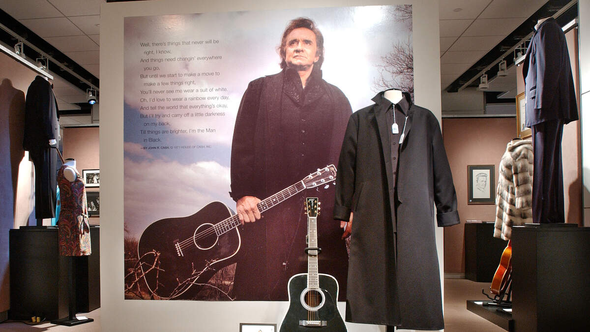 An unknown perp seems to have shot the Johnny Cash mural in a peculiar area... and now it's leaking from his crotch.